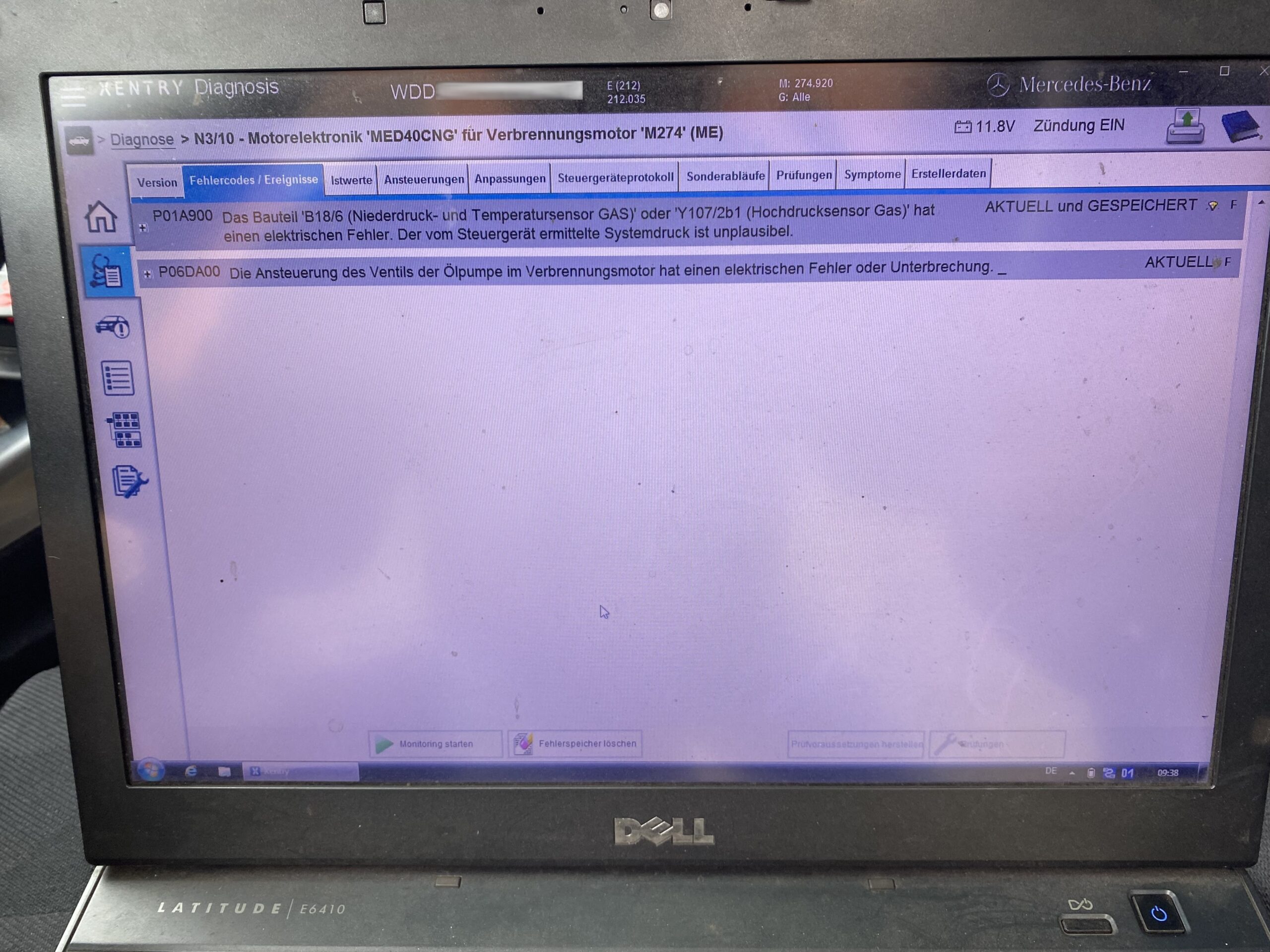 Eine erste Reparatur in der Mercedes Niederlassung (10/25) schlug leider fehl, da der Wagen danach lediglich 1500km auf Erdgas fuhr und seinen Dienst dann erneut mit derselben Fehlermeldung verweigerte. Es wurde eine Fehlfunktion des Niederdrucksensors in der Rail diagnostiziert. Der ermittelte Gasdruck war zu hoch.